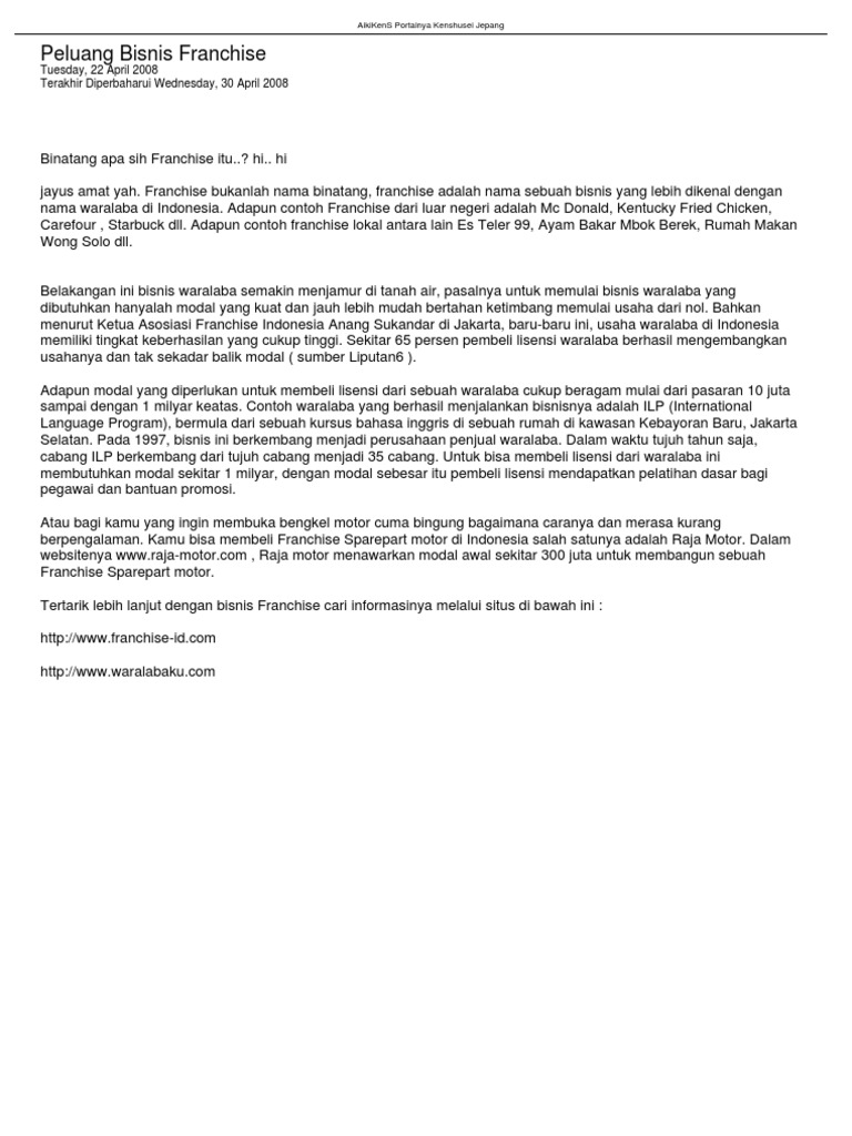 Prosedur. Anda dapat menjumpai penjual bakso dimanapun, di depan sekolah franchise makanan satu ini juga beragam jenisnya berdasarkan karakteristik bakso yang dikembangkan oleh franchisor, dengan harga yang. Bisnis franchise adalah bisnis yang menggiurkan bila kita memilih franchise yang tepat.