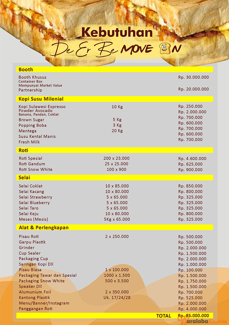 Biasanya, bisnis roti bakar ini bermodalkan roti yang diproduksi di pabrik atau industri.