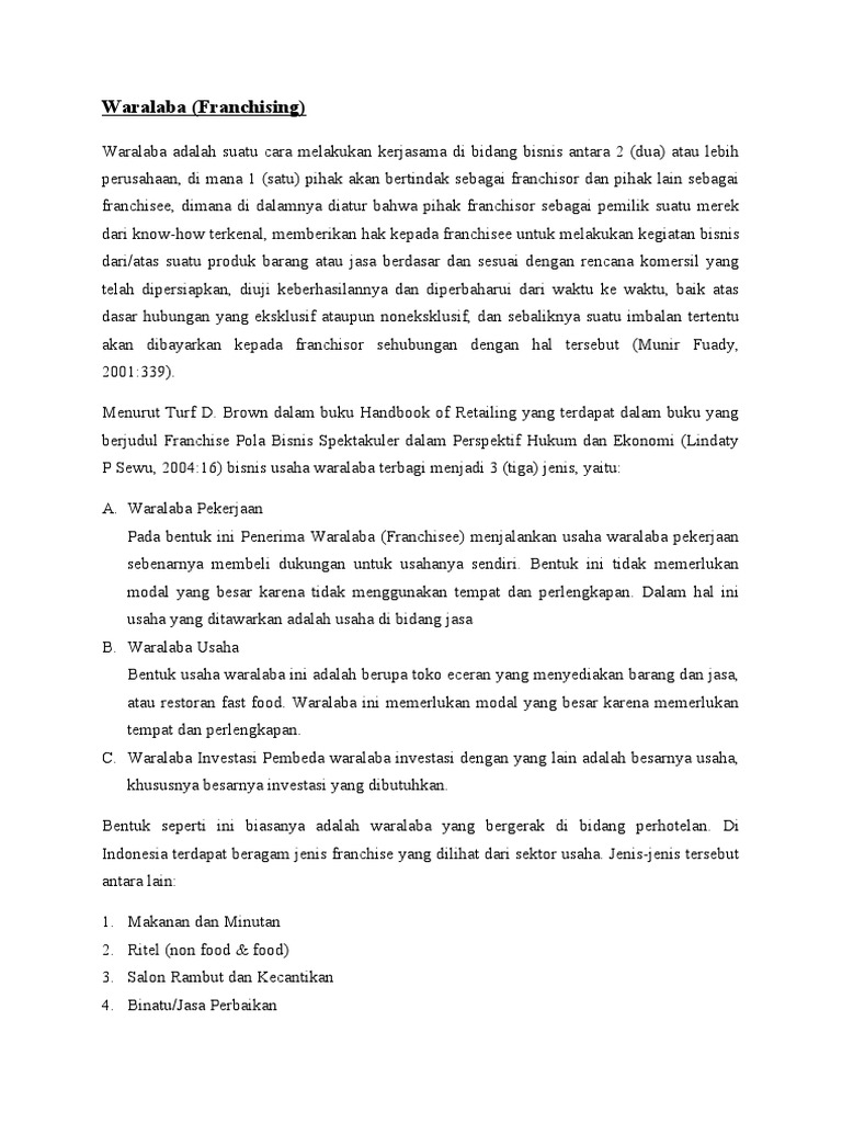 Bisnis. Contoh surat lamaran pekerjaan posisi. Jenis dan contoh usaha waralaba | waralaba adalah suatu hubungan kerja yang memiliki kontrak atau perjanjian antara pemilik waralaba (franchisor) dan.
