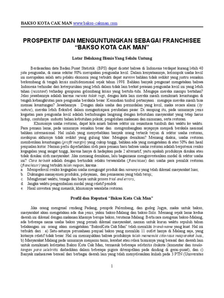 Bakso urat dan bakso bakarnya mantab bgt. Satrio semanggi plaza 3rd floora, jakarta indonesia. 100 million bakso malang kota cak eko provides franchise / waralaba in food industry panglima sudirman kavling 14, malang, indonesia bakso malang kota cak man offers franchise johan lim berkata promo paket ini akan segera berakhir dan bila menunggu saya baru ke jakarta (untuk.